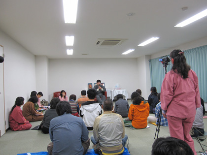 上祐代表の「講話」が始まった。全員が座禅を組んで瞑想しながら講話を聞くのかと思いきや、みんなリラックスして聞いているのが印象的だった。オウムの時代もこうだったのかな?