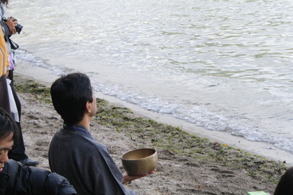 中禅寺湖の西端にある「先手が浜」。観音浄土としての日光発祥の所らしい。ここで気功とヨガ、瞑想が2時間行われたが、その「修行」とはみんな自由に好き勝手にやってとても緩いものだった。これも光の輪の特徴か?