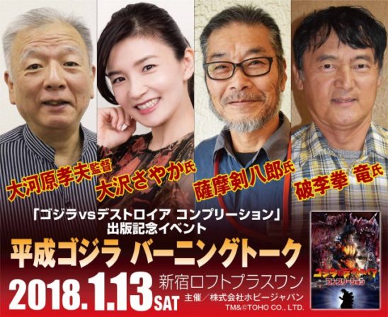 2017年12月9日発売の「ゴジラvsデストロイア コンプリーション」の出版を記念して、『ゴジラvsデストロイア』(1995年)の監督の大河原孝夫氏、小沢芽留役を演じた大沢さやか氏、ゴジラを演じた薩摩剣八郎氏、ゴジラジュニアを演じた破李拳竜氏をゲストに迎えてトークショーを開催。ホビージャパンから発売されたゴジラ関連書籍の販売コーナー、プレゼント抽選会、当日限定メニューなど、内容盛りだくさんで贈る。