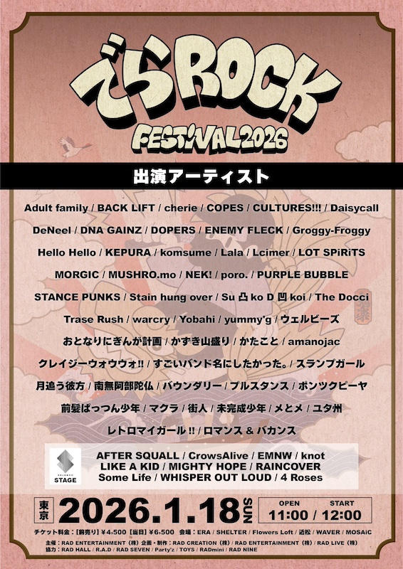 RAD CREATION & RAD ENTERTAINMENT presents 「でらロックフェスティバル TOKYO 2026」