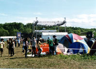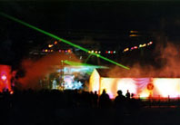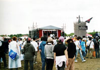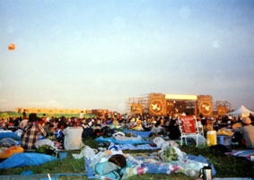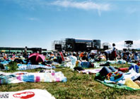 Ash、HYと続く。こういうイベントでないと、めったに見れないバンドが揃っているだけに、会場はお祭りのような盛り上がり。夜CHARAさんが始まる頃、会場には大きな大きな花火が上がった。歩いていた人が足を止め花火を見つめている。きっとこの夏一番忘れられない花火になったことだろう。そして明け方太陽が上がりかけた頃アースに移動。ロフト出演回数NO.1、そしてアースのトリ、ニューロティカだ。念願の野外イベントということで、メンバーも大ハリキリ。ピエロ姿のあっちゃんはいつも以上にステージを駆け回り、黄色い紙テープが飛び、タオルがグルグル回され、会場もこれでもかと言わんばかりの盛り上がり。そしていつものかけ声でロティカのステージは幕を閉じた。外に出ると、太陽は完全に上がりきっていたが、そこから出てくるお客さんの顔はもっともっとキラキラしていた。