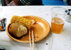ここで、とりあえず会場がどうなってるかの散策開始。GREENOASISの横には一番大きなSUNSTAGE。ちょっと歩くとREDSTARFIELD。だいぶ歩いてEARTHETENTとMOONCIRCUS。その間には何十件も食べ物屋が立ち並び、夏バテで弱りかけていた体に食欲をわかせてくれた。軽くお酒を注入し北海道の食を堪能する。この頃EARTHTENTでは機材トラブルでタイムテーブルが大幅に遅れていたため、グリーンに戻りグループ魂を。グリーンの収容人数を遙かに超える大人数が押し寄せてしまい、ライブは一時中止となってしまったが、なんとか再開。やっぱりステージは見えない状態だったけど、さすがグループ魂、盛り上げ方が違う。いろんな小ネタも取り入れ、ステージが見えなくても全然楽しめた。このころには雨も上がり空には星が瞬き始め、雄大な北海道を感じ取れた。その後EARTHTENTに移動し、私がかなり見たかったバンドのひとつASIAN