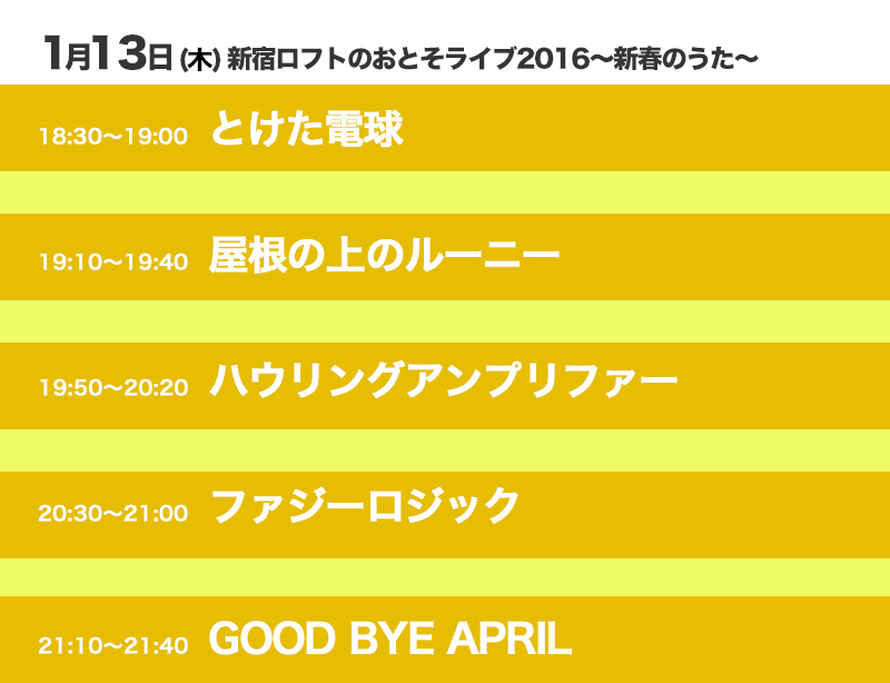 GOOD BYE APRIL/とけた電球/ハウリングアンプリファー/ファジーロジック/屋根の上のルーニー
