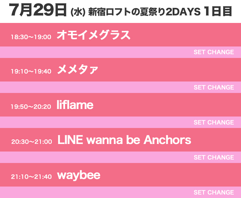 7月29日(水)<新宿ロフトの夏祭り 2DAYS 1日目>