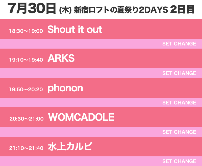 7月30日(木)<新宿ロフトの夏祭り 2DAYS 2日目>