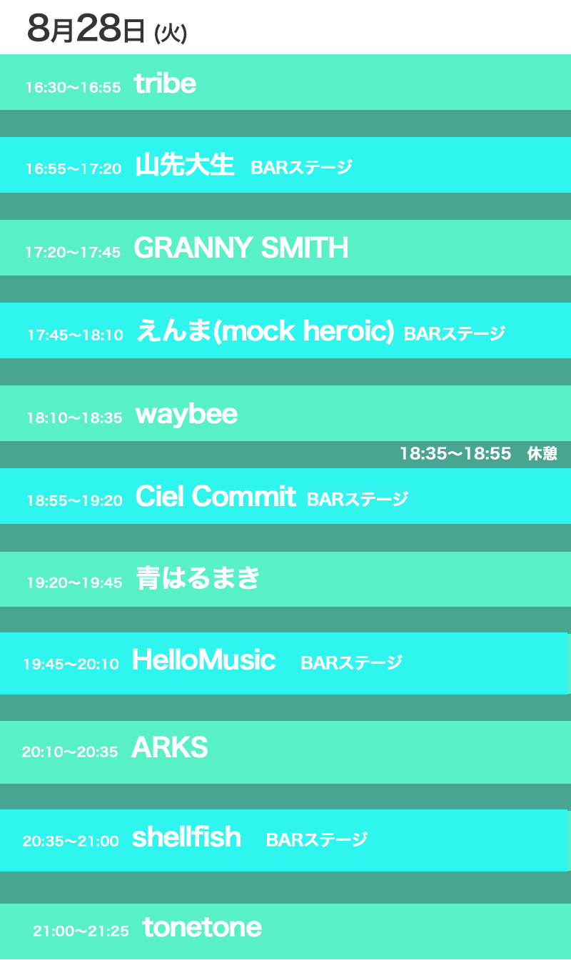 【出演】tonetone、waybee、山先大生、HelloMusic、CielCommit、GRANNY SMITH、青はるまき、tribe、ARKS、shellfish、えんま(mock heroic)