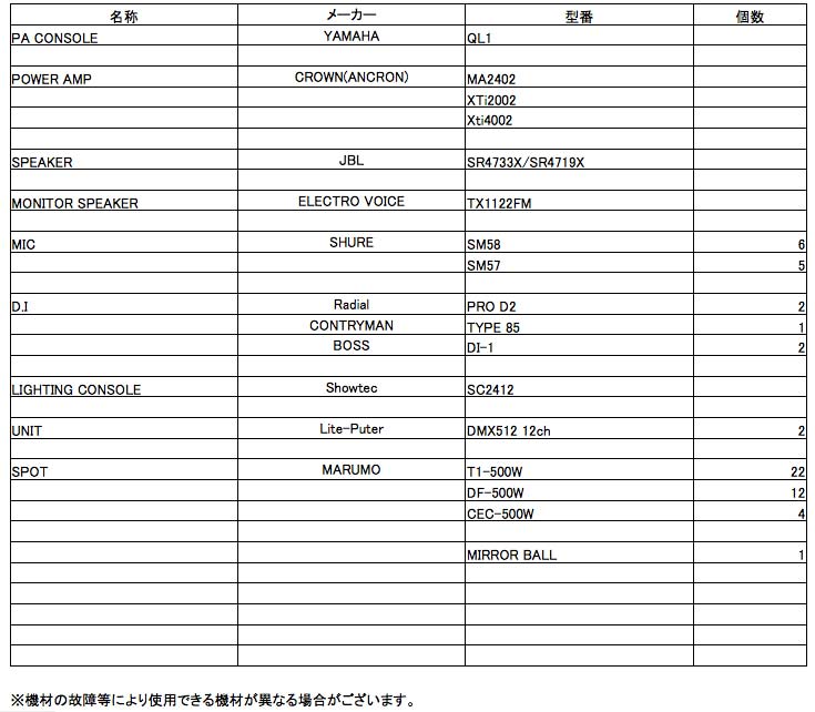 コンセプト | フロアマップ | 機材リスト | ブッキング