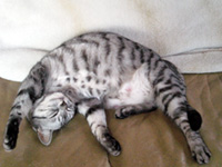 平野米子1歳7カ月。生まれはペットのコジマ(最悪)のアメショー。血統書付きだがその手続きには何万円もかかるのでやめた。9万6000円で一人ぼっちのおいらに単身売られた。なぜか絶対おいらの膝の上には来ない。