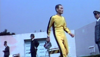 府中刑務所前で撮影中の奥崎謙三(「神様の愛い奴」より)