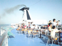さて「明日はギリシャだ」とみんな張り切っていた。昼過ぎ船内放送。「重要なお知らせ」ということで、船内説明会が開かれた。船側の説明によると、トルコ港湾局より又出港差し止めがあり、この船はトルコ・イズミール港に移動し修理する。最低3日はイズミールに釘づけになるらしい。