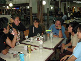 更には船内仮装パーティーが夕食時に行なわれて、フォーマル&仮装が義務らしい。私は同室のSさんと話してそれには出席せず、二人で波平で酒を頼んで寿司を食べていた。SさんがKさんというおばさん(60歳)を連れてきた。