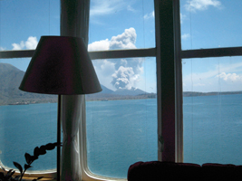 図書室からラバウルの火山が見えた。夜になると溶岩が真っ赤に吹き上げていた