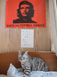 復活今月の米子・明日の勝利を信じるゲバラと記念撮影だ。下に「葬式無用・戒名無用・散骨」と白州次郎の言葉が書かれている
