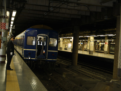 入庫してくる特急寝台あけぼの号(上野駅)