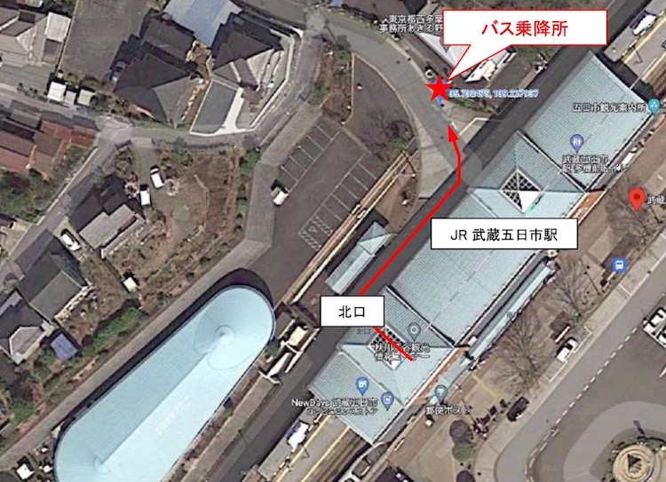 乗降場:JR武蔵五日市駅、改札を出て右、階段を上がって北口地上に出たところ(当日案内あり)