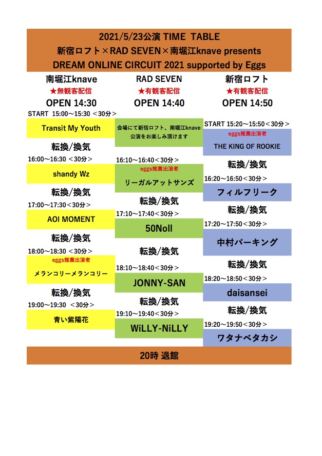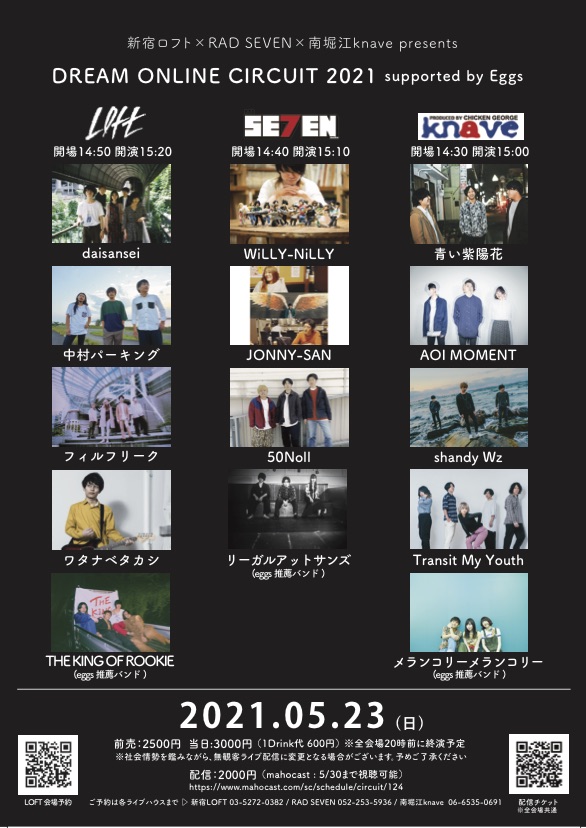 新宿ロフト×RAD SEVEN×南堀江knave presents DREAM ONLINE CIRCUIT 2021 supported by Eggs