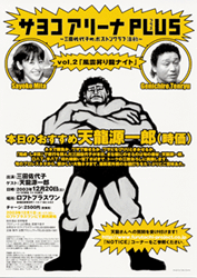 ディープな男性中心の中でプロレス・キャスター、プロレス・ジャーナリストとなった希有な女性、三田佐代子。プロレス専門チャンネル・サムライTVの「生でGONG!×2」メインキャスターを務めながら、「プロレス会場あるところ三田佐代子ありき」というぐらいの観戦取材を行っている。その一貫した現場主義なスタイルはコアなプロレスファンも推奨し、浅草キッドからも認めているという。そんな三田佐代子が「サヨコアリーナPLUS(プラス)」と題してプロレス関係をゲストに定期ライブがプラスワンではじまった。第二回目を迎える12月のゲストは、なんと天龍源一郎! アントニオ猪木とジャイアント馬場二人からピフォールを奪った唯一の人であり、プロレス歴40年の大レスラー。いかなるトークで応戦するのか!? 三田佐代子。彼女にどんな眼差でプロレス・格闘界をみつめているのかを改めて伺う。(text:斉藤友里子)