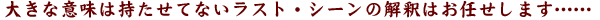 解釈は人に任せちゃってるんで。よく映画とかでもラスト・シーンの解釈が人によって違うのってあるじゃないですか?
