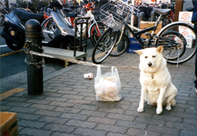| これね……律儀な犬ですよね。荷物がベチャってならないようにちょっと浮かしているくらいの距離で、ご主人が帰ってくるまで見張ってるんですね。撮っ