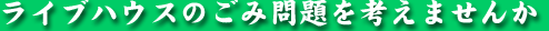 常では100回以上使用できるものです。そこで、このリユースカップを手にしたお客さんは、飲み終わったらカウンターか回収箱に戻していただき、ごみ箱に捨てたり持って帰ったりしないようお願いします。ライブハウスがもっと気持ちのいい空間になるように、みんなで少しずつできることをやっていきましょう!