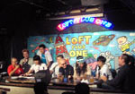 真は男の墓場プロダクション大集会。左から、杉作J太郎、吉田豪、しまおまほ、伊藤雄一、ごっしー、宇多丸、掟ポルシェ。、治郎丸、最首英也。 |
