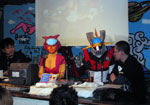 | 「好・き・と・か」「フー!」と絶妙のコール&レスポンスで毎回アニソンの大合唱を見せたオタッキー佐々木とやまけんのトークライブ。ちなみにオタ佐々はプラスワンで一番ダイブをした男。しかも「ときメモ」のコスプレで(笑) |
