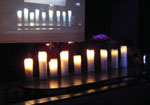| アースデイトーク「地9の日」で灯された9本のロウソク。なんか政府は平和憲法を性急に棄てようとしているみたいだけど、世界に誇る憲法9条を簡単に棄てていいのか? 時間をかけてじっくり議論すべき問題だ。 |