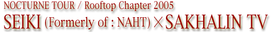 SEIKI:そういう掴みどころがないのが彼の魅力ですね。ホントにズルい(笑)。 SAKHALIN TV:恐縮です(笑)。今はやりたいことが膨らんでとっちらかった状況なので、それを整理してまた今後の制作活動に繋げたいと思ってます。音源作りもそうですけど、今はやっぱりライヴをやるのが楽しいんですよ。ライヴって本当に気持ちいいなぁと思う。だからシェルターでSEIKIさん、蝦名君たちと一緒にやる『NOCTURNE TOUR』が今から凄く楽しみなんです。 SEIKI:『NOCTURNE TOUR』は、これからWest Chapter、South Chapterと進めていきたいし、いずれはAsian Chapterとかまで考えてますから。1年かけて日本一周、10年かけて世界一周したいと思ってます。今はメールと携帯電話さえあれば世界と繋がれるから、あとはやる気だけ。細かいことを挙げればいろいろあるんだけど、あまり現実的になって自分がやりたいことを端から諦めるのはナンセンスだと思っているので。最小限の編成で最大限の音楽をやる。待ち合わせのことは気にせずに、今は音楽を純粋に楽しみたいんですよ。 |