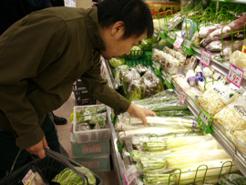 | ▲鋭い目つきでネギを選ぶ吉村氏。 |