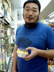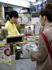 ▲レジにて値切る目黒嬢。本気です。 |
