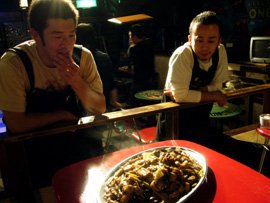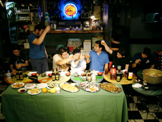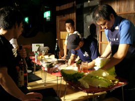 ▲もちろんホッピーは欠かさないブッチャーズ・チーム。というか吉村氏(笑)。 |