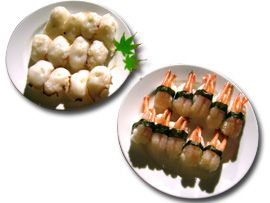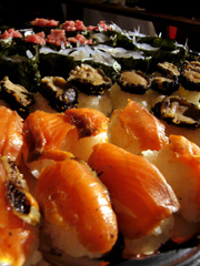 ▲秘技! 軍艦巻の海苔をカットの術! |