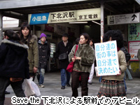 下北沢の街をこの大きな危機から守ろうという動きが、現在、下北沢のあちこちで起こっている。もっとも早く立ち上がったのは、街の住民やシモキタを愛する人達から成る「Save the 下北沢」だ。彼らのホームページには次のように説明がある。
