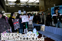 下北沢シェルターを会場に、商業者協議会代表で、老舗バー「Lady Jane」オーナーの大木雄高氏が記者会見を行い、その後は、世田谷区役所まで計画見直しを訴えるパレードを実施。平日の昼間にも関わらず店舗経営者や支援者が100名以上駆けつけた。