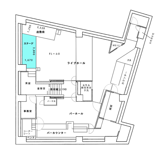 | 営業形態 | EVENT SPACE BAR SPACE(20:00〜24:00。深夜イベント or バーライブがある日はAM4:00まで営業!) |
