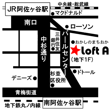 ![]() その昔、1970年代の中央線文化が華やかし頃、73年6月にライヴスポット“西荻窪ロフト”はオープンしました。その後“ロフト”は新宿、下北沢に居を移しましたが、ライヴハウス“ロフト”の原点に立ち返りたいと考え、再び中央線沿線で新たなライヴハウス“Asagaya/Loft A”を2007年に立ち上げました。