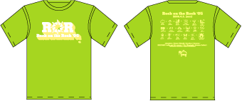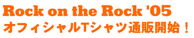お陰さまで会場にて完売致しましたRoR'05オフィシャルTシャツですが、 お待たせ致しました!岩盤と海と空をイメージした限定色を加え通販を開始します!! またサイズもXLまで拡大!全5色の可愛いカラーリングで今年の夏を待ちましょう! 4月30日をもって受注は締め切りました。たくさんのお申し込みありがとうございました! 商品が完成次第発送致しますので、今暫くお待ちください。 尚、'04T「シャツは若干ですが在庫があります!こちらから購入可能!お早めに!! ・デザイン表面を拡大する 裏面を拡大する・値段\2,500-・カラー、サイズ
