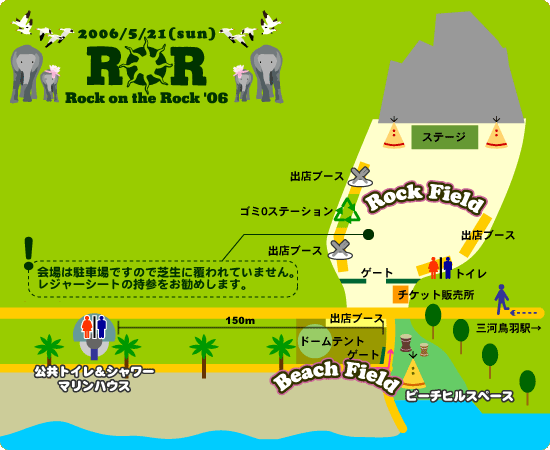 ○会場内へのテント、パラソル、バーベキューセット、クーラーボックス等の持ち込みは一切禁止いたします。また、コンロ等による火の使用、花火及び法律で禁止されている危険物等の持ち込み及び、ビン、カン類の持ち込みも一切禁止いたします。