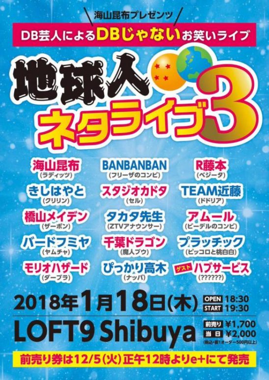 ラディッツ芸人海山昆布主催のDB芸人たちによるネタライブ、待望の第3弾!