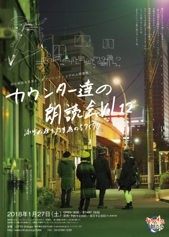 あなたの言葉を、当日のライブ中、成宮アイコ・葛原りょうの二人が朗読します。140文字以内のメッセージとお名前(ハンドルネームでも結構です)を添え、件名を「カウンターメッセージ」として counter.roudoku@gmail.comまで送信してください。もちろん当日会場に来られない方のご応募もOKです。あなたの気持ち、なかったことにするまえに、ここに送ってください。