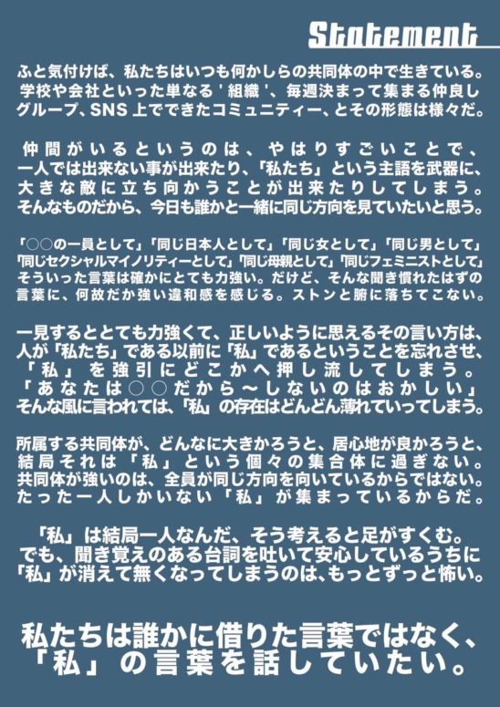 モデル中川えりなによるカルチャーイベント第五弾。カルチャーが交錯する時代を捉え、日常議論されにくい話題も、ターゲット層が潜在的な興味を寄せるテーマとしてざっくばらんに取り上げる。