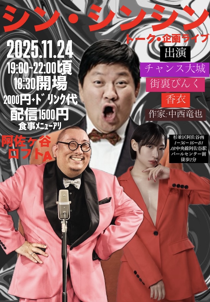 • ※近隣住民・周囲の店舗に迷惑がかからないよう、開場時間前や終演後には会場周辺にたまらないようにお願いします。