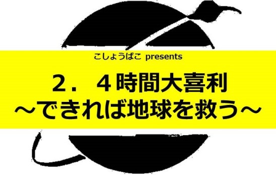 24時間かけて愛で地球を救おうとするテレビ番組の裏で、2.4時間かけて大喜利で、できれば地球を救おうと、みんなでたくさん面白回答を募金する、ワイワイ楽しい大喜利の集いです。