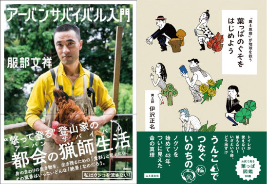「命を返すノグソ」と「命を奪う狩猟」、互いの活動について語ります。それぞれの新刊『葉っぱのぐそをはじめよう』(伊沢正名/山と溪谷社刊)、『アーバンサバイバル入門』(服部文祥/デコ刊)の裏話も。