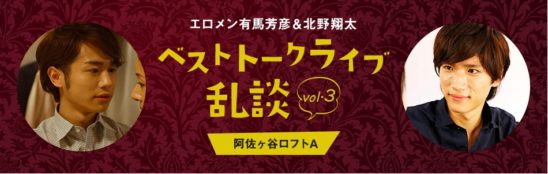 女性向けセクシーDVDに出演中のエロメン有馬芳彦・北野翔太がお送りするトークイベント第3弾!