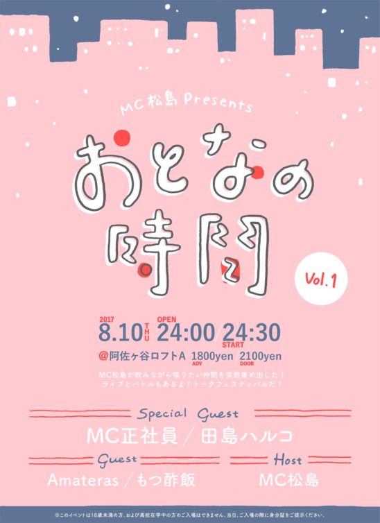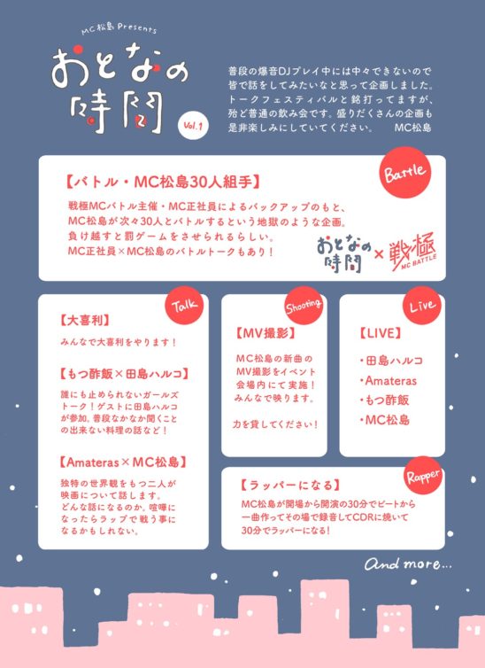 トークあり、ミニライブあり、MCバトル、大喜利あり!!