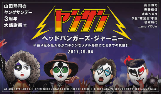 そこで我々は今回、3周年記念として今までの全放送の中から視聴者が選んだ神回ランキングを紐解きつつ、この3年の番組の成長と変化(特に山田玲司のドラスティックな進化)を、我々と共に走ってきた“ヤンサンファミリー”といっしょに祝うべく、とびきりシュールでキッスな夜会を用意しました。