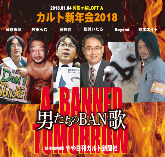 2017年は、『日本会議の研究』(扶桑社新書)がベストセラーのとなった菅野完がTwitterやFacebookのアカウントをBANされ、つづいて藤倉善郎は4回もTwitterをロックされた。この2人に、過去ホームレス関連書籍が「発禁」になった漫画家の村田らむ、2017年衆院選をめぐって政治家から抗議を受けながらYouTubeでBANを免れた鈴木エイト、さらには2004年に「Google八分問題」「ウェディング問題」で注目されたウェブサイト「悪徳商法?マニアックス」管理人・Beyondが加わって、自らのBAN体験と「表現の自由」を語る。
