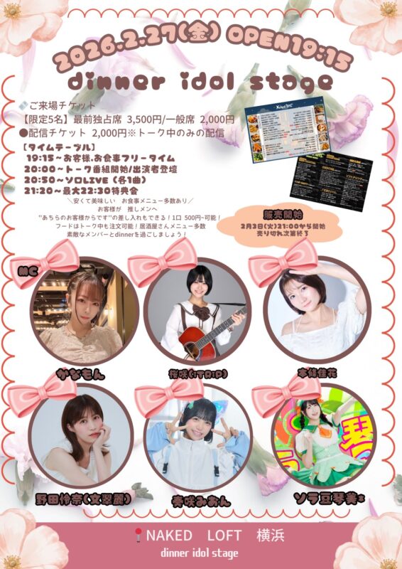 ◎会場チケット 前売り¥ 3,000 / 当日¥3,500(※要1オーダー500円以上)