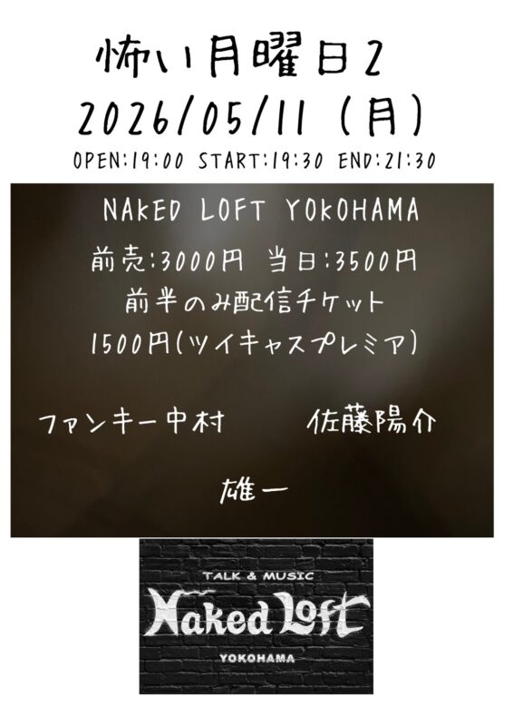 雲谷斎、いたこ28号、りゅうあのレギュラー陣に、毎回怪談で活躍されていらっしゃる方をお呼びして、繰り広げる怪談イベントです。